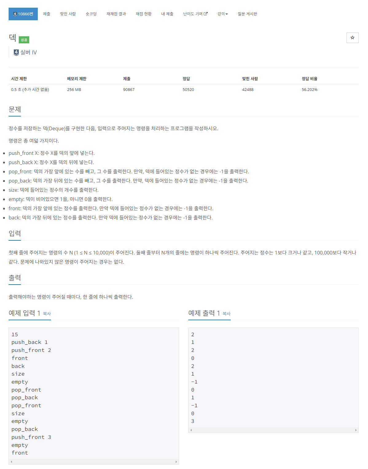 import java.io.*; import java.util.*; public class Main { // ์ ์๋ฅผ ์ ์ฅํ๋ ๋ฑ(Deque)๋ฅผ ๊ตฌํํ ๋ค์, ์